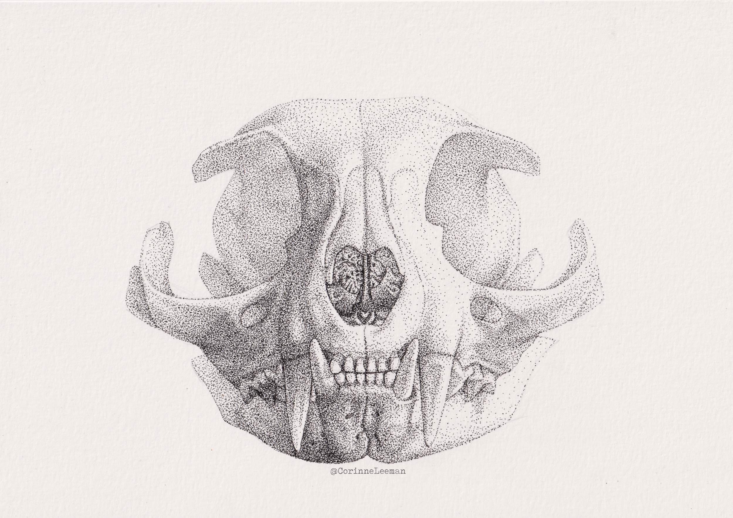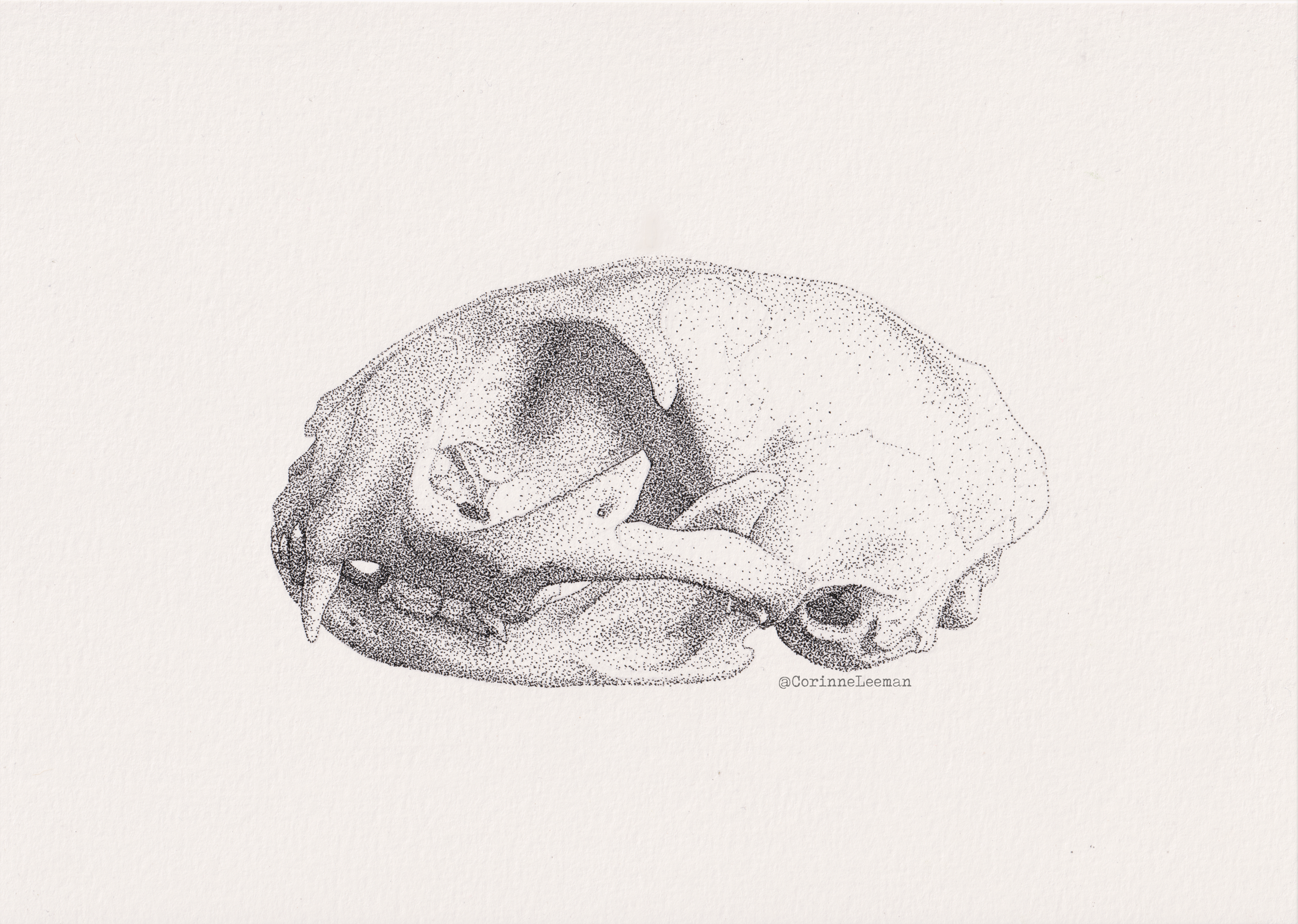 Each illustration was drawn using a fineliner pen from direct observation, this way I could capture the subtle ways the light falls on various planes of the skull, highlighting the architectural beauty.