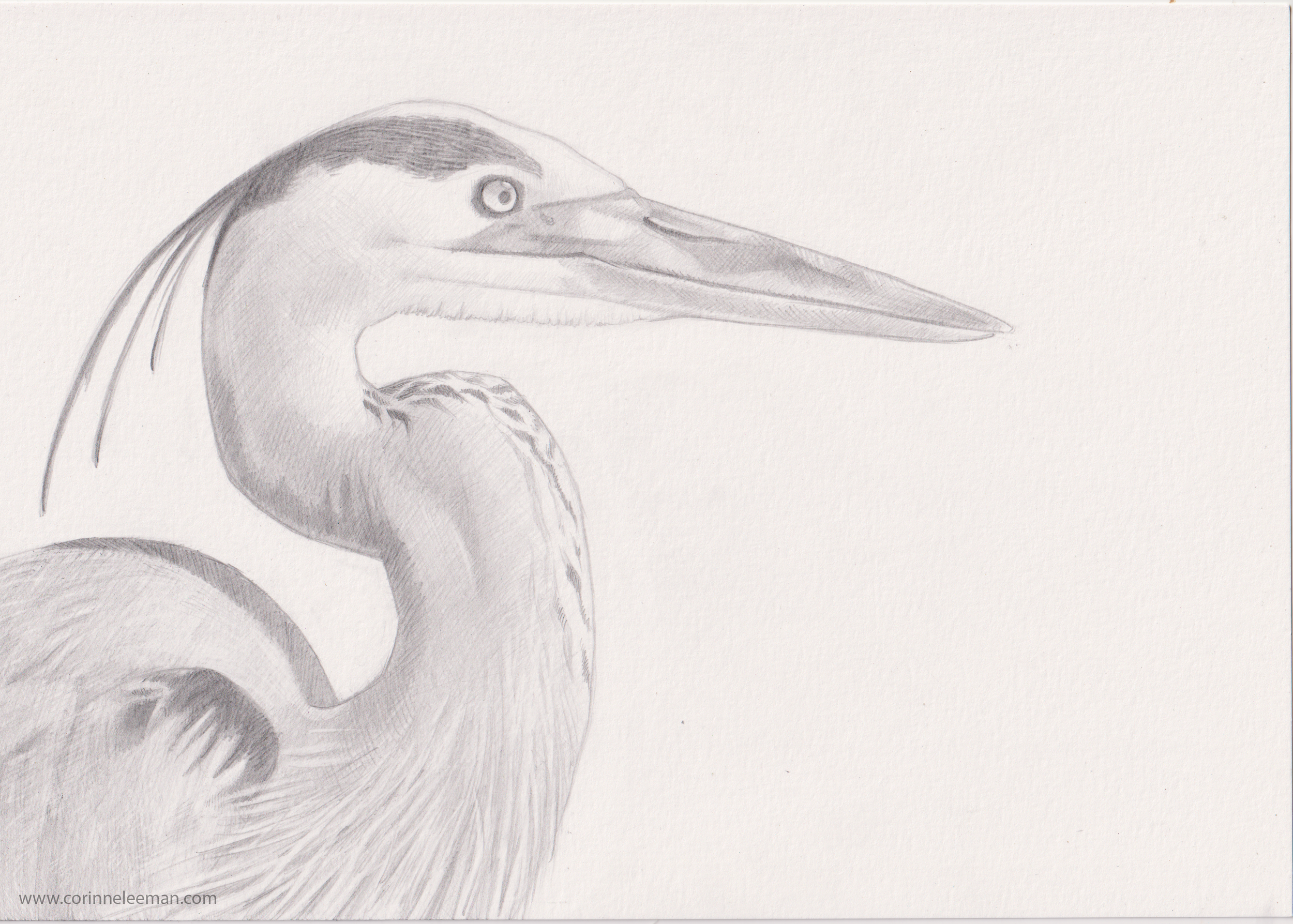 Continuing with my project, I wanted to draw attention to the differences in anatomy of wading birds. Through my research I discovered that herons use their unique neck and beak shape to spear fish, and so I illustrated this bird in its common resting position to reference this.